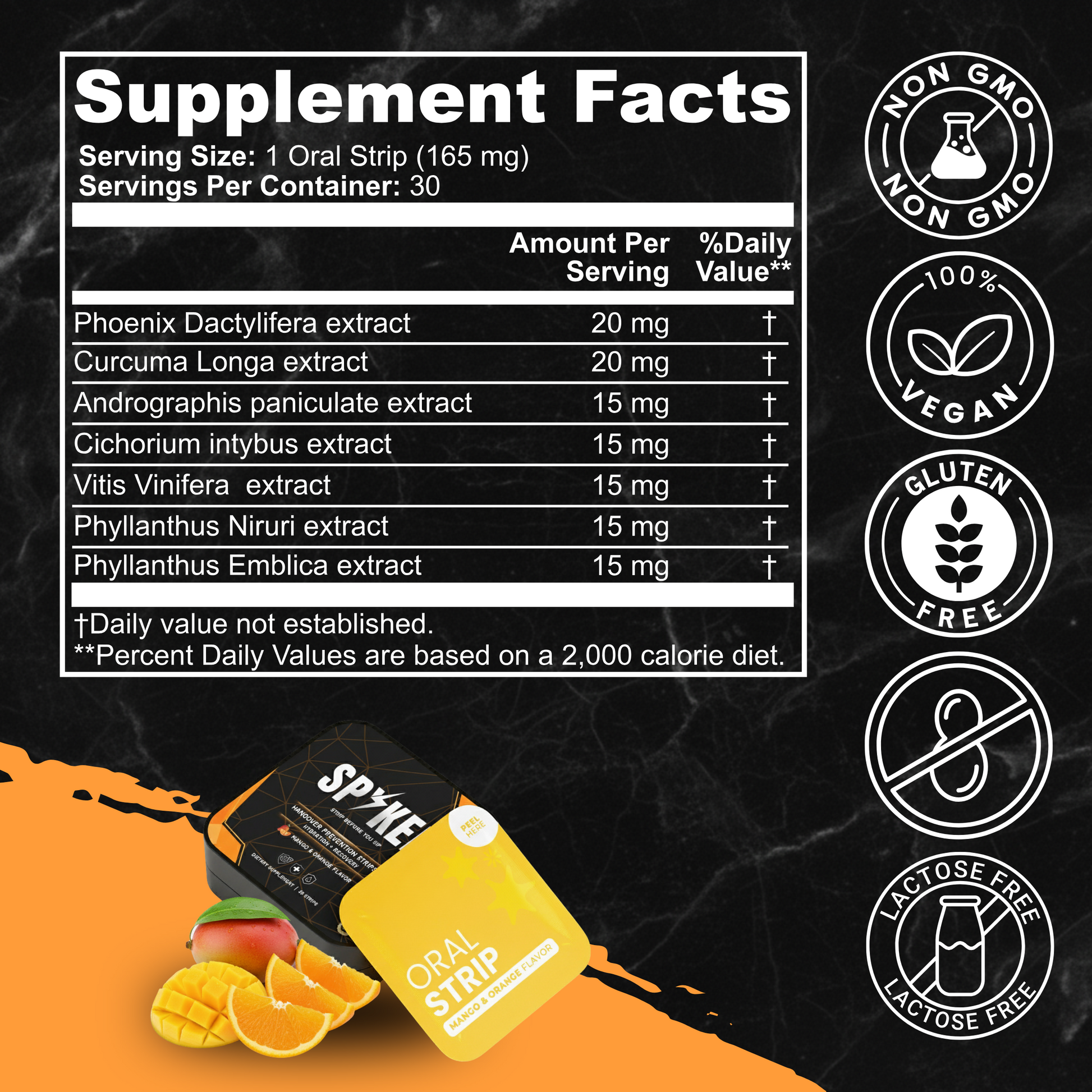 Pullulan, Cellulose, Mannitol, Licorice Extract, Lecithin, Malic Acid, Steviol Glycosides, Mango Flavor, Orange Flavor, Amla (Indian gooseberry) Extract, Stonebreaker (Phyllanthus) Extract.